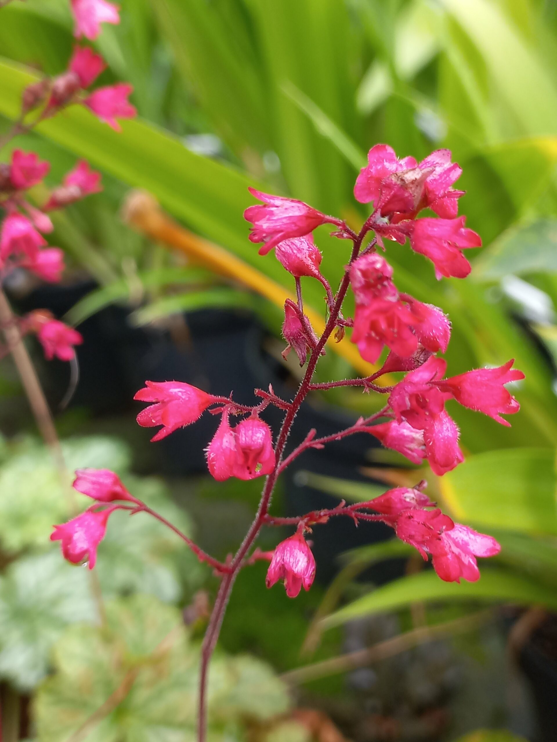 Les fleurs tiennent bien en vase. Cette Heuchère se marie bien avec d’autres couvre-sol d’ombre comme les brunneras.